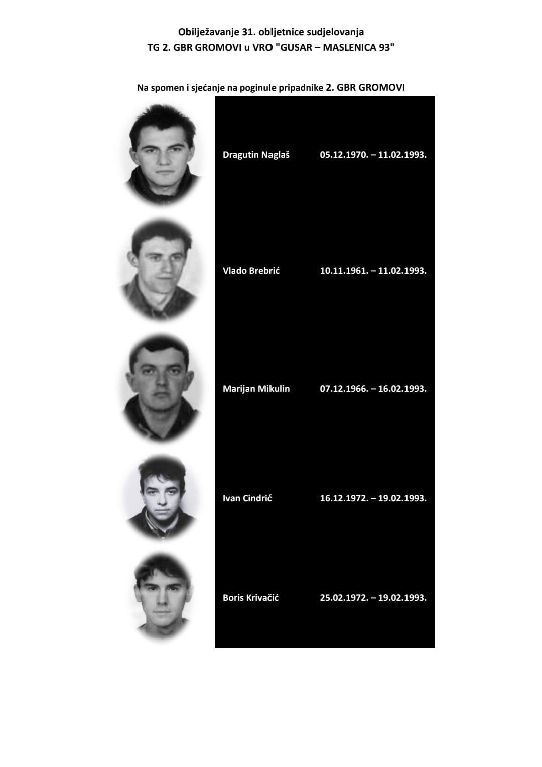 USKRŠNJA ČESTITKA URV 2.GBR “GROMOVI”