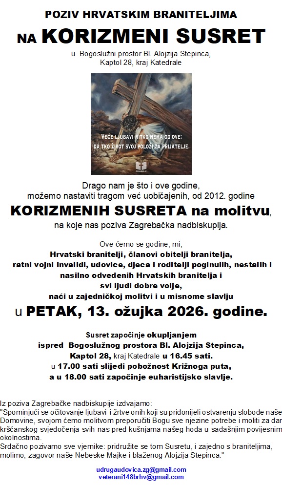 POZIV HRVATSKIM BRANITELJIMA NA KORIZMENI SUSRET