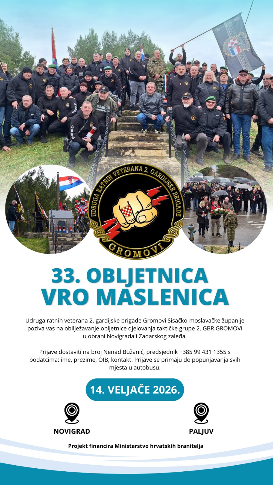 Poziv na obilježavanje 33. obljetnice VRO Maslenica (Novigrad-Paljuv)